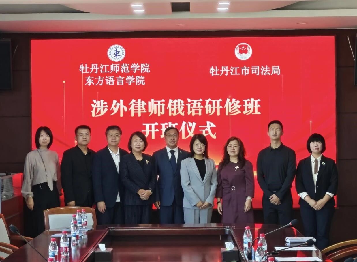 为积极深化校企合作,彰显大学服务地方发展的价值,全力推动“法律俄语创新实验班”与社会需求精准对接,培育适应时代需求的涉外法律人才,公司与牡丹江市司法局携手,共同举办了“涉外律师俄语研修班”。9月27日上午,开班仪式在综合楼1206室举行。牡丹江市司法局党组成员、副局长高红霞,市律师协会会长郭冬梅,市司法局律团队格科科长邱学风,公司党委书记周英会、经理房国铮、党委副书记张秋实等领导悉数到场,同时还有来自牡丹江市律师事务所、市公安局、市总工会、镜泊湖管委会的12位律师学员,以及公司众多教师共同出席,仪式由副经理刘凯东主持。