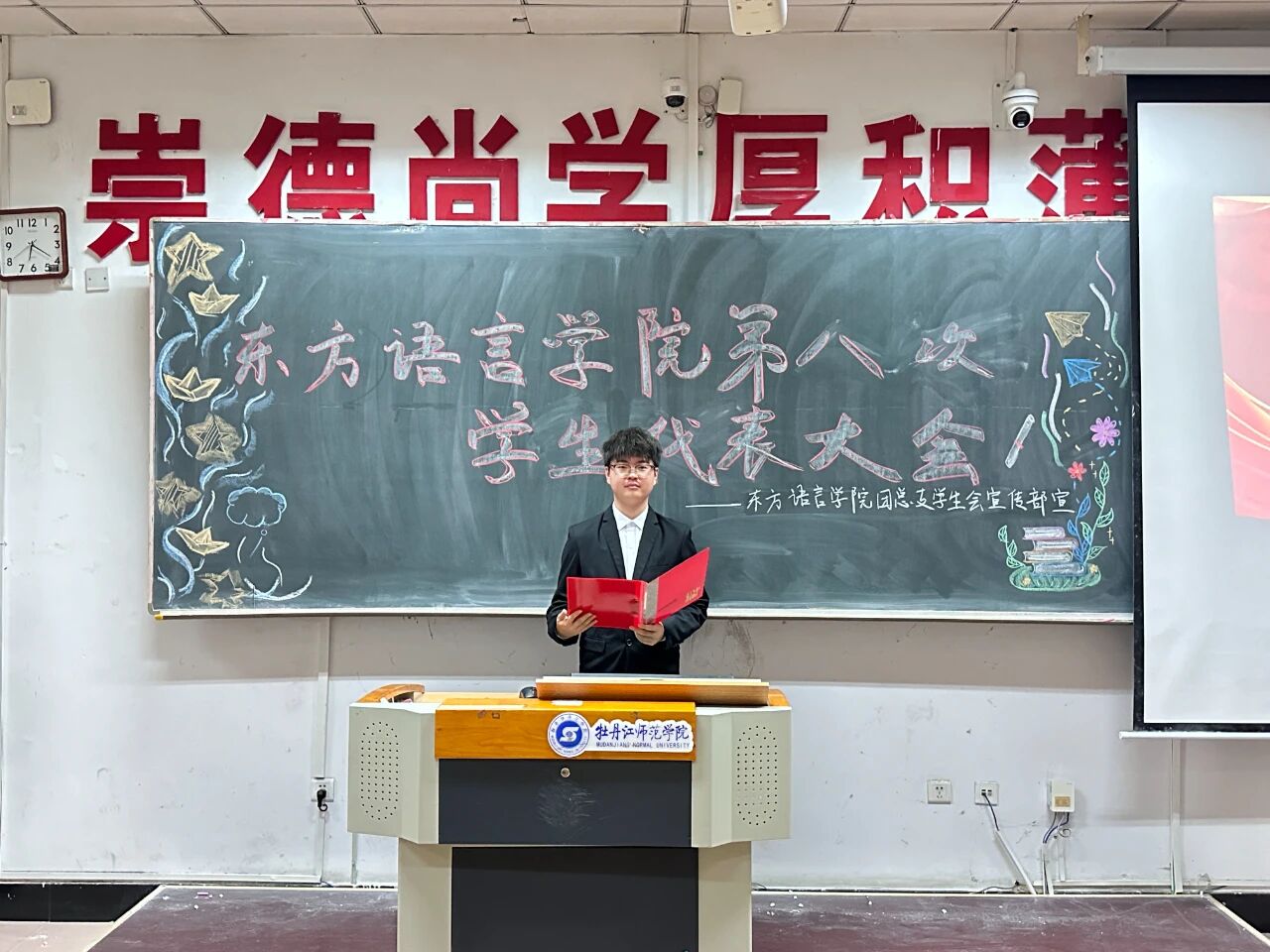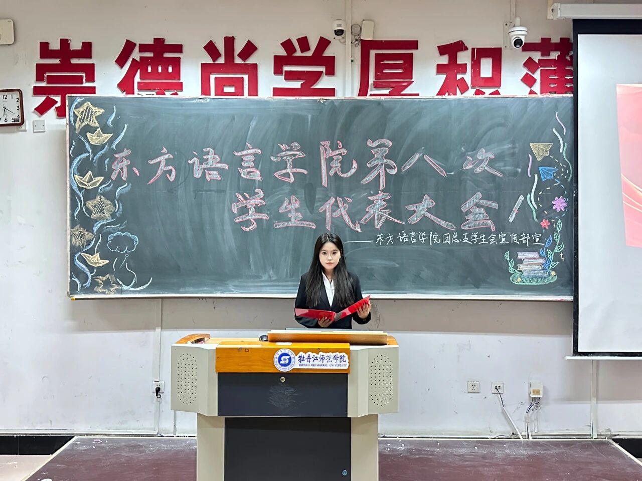 2025年9月26日,1946伟德国际源自英国第八次员工代表大会在综合楼126室正式举行。公司党委副书记张秋实、辅导员郝欣欣出席会议,2023级、2024级、2025级员工代表参加会议。大会由第十八届团总支副书记陈晓龙主持。