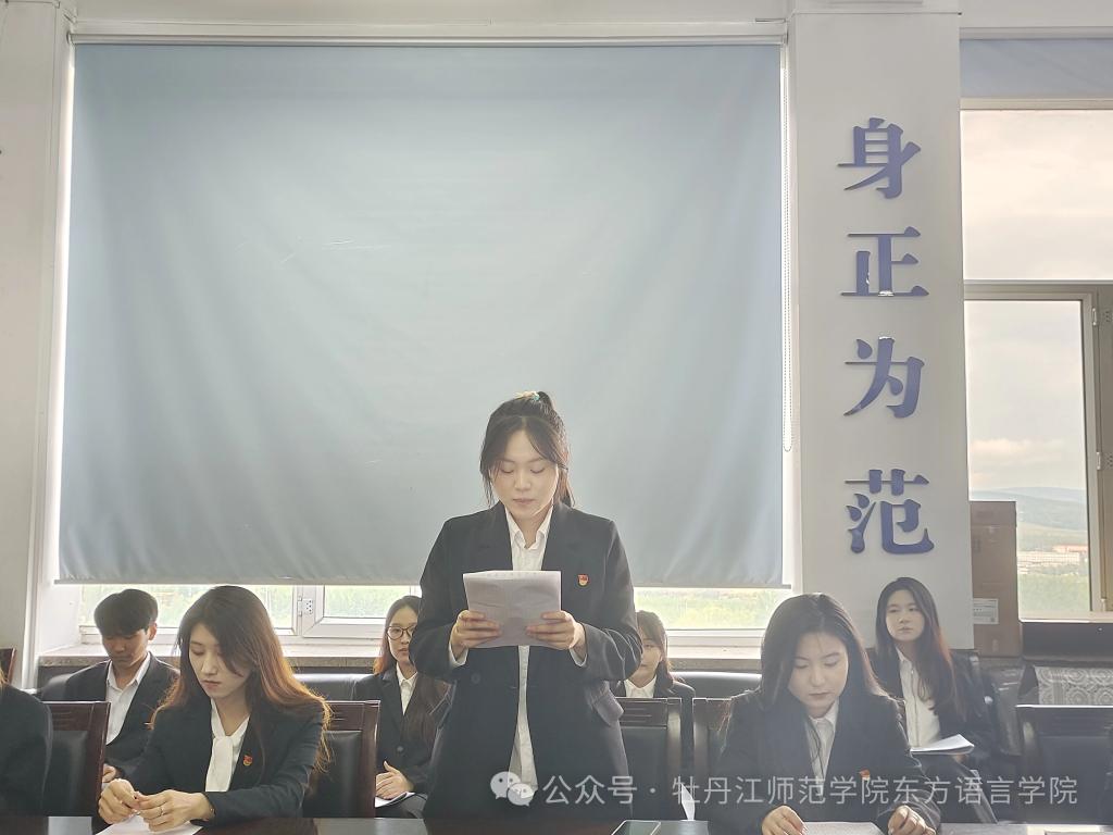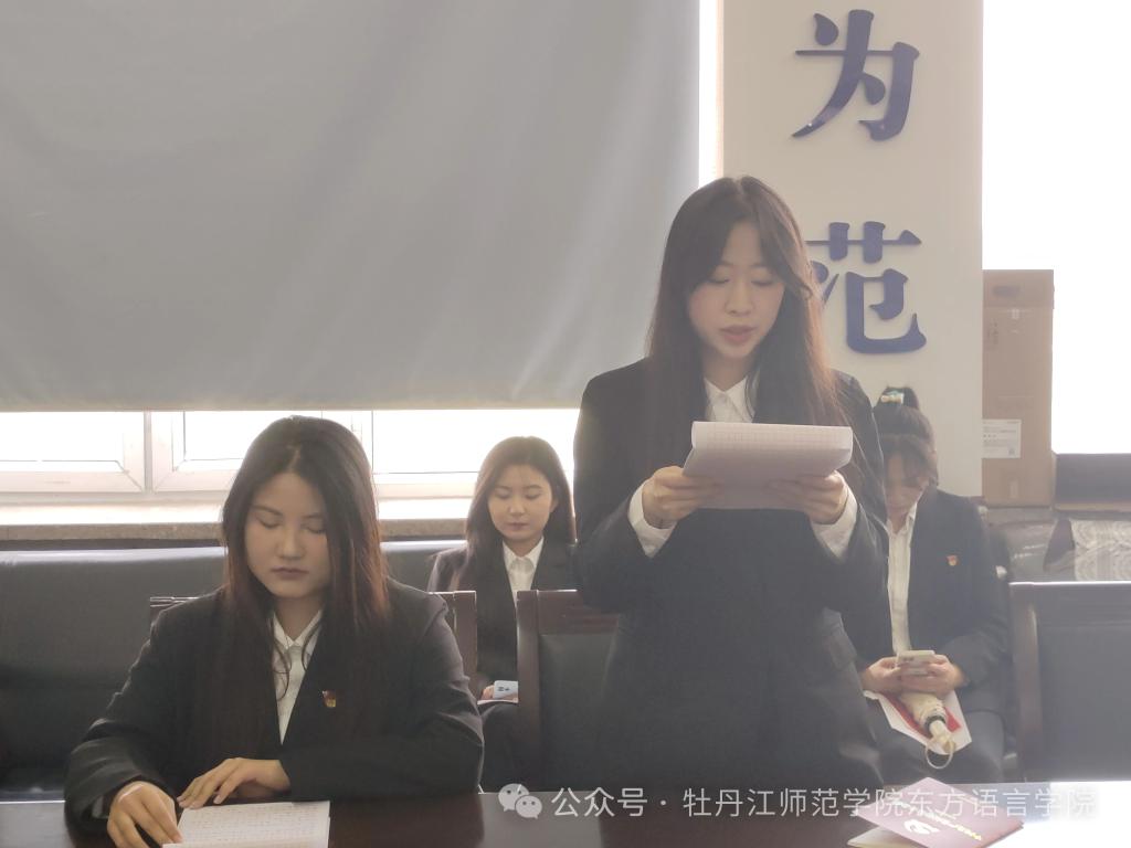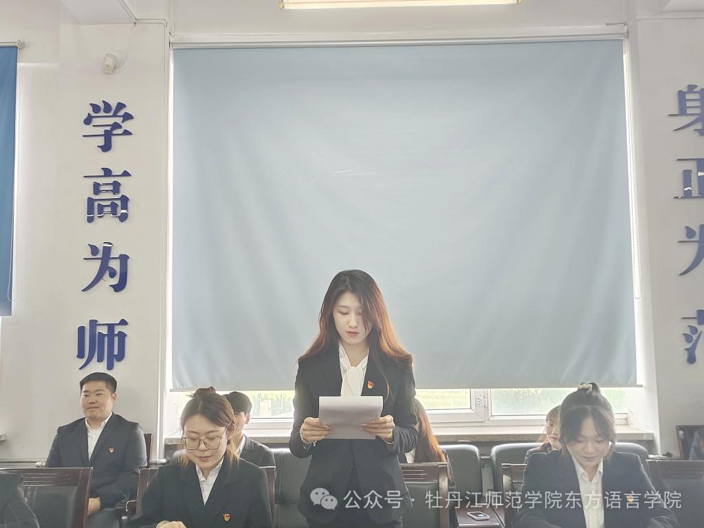 会议第一项,俄语员工党支部召开预备党员转正大会。5名预备党员依次宣读转正申请,培养人向组织汇报其在预备期内的各项表现,各位与会党员充分发表自己的意见。随后,经讨论投票,大会一致通过翟秋子、张哲、只文静、徐慧洋、李思萌5名预备党员转为中共正式党员。