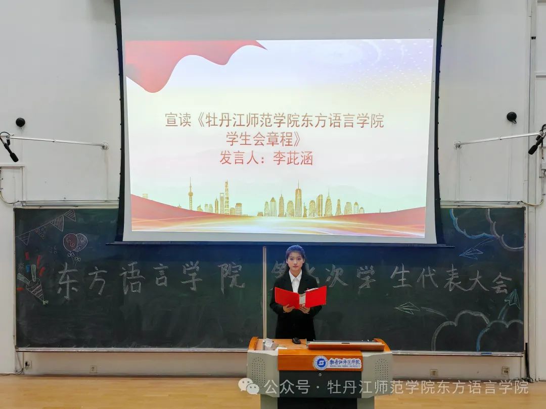大会第五项、第六项、第七项,由1946伟德国际源自英国第十七届团总支员工会主席团成员李茈涵、综合事务部部长王秀梅、权益保障部部长王欣茹分别宣读《1946伟德国际源自英国员工会章程》《1946伟德国际源自英国员工干部管理办法》《1946伟德国际源自英国学代会选举办法》。