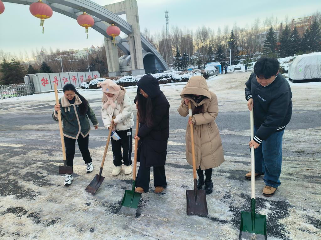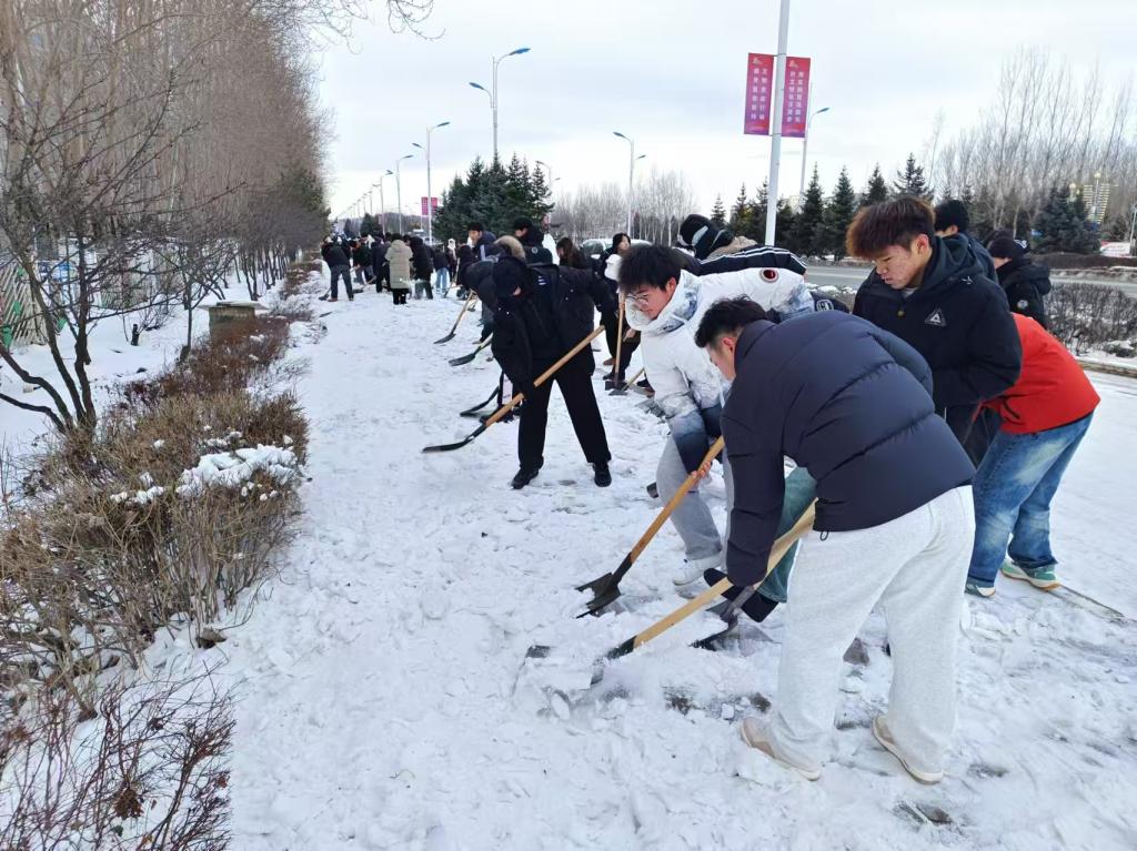同学们分工明确,有的挥动着铁锹,将积雪铲起;有的拿着扫帚,清扫着路面上的残雪;还有的合力将积雪堆放到指定位置。他们不畏严寒、互帮互助,奋力铲除路面积雪,忙碌的身影构成一道亮丽的风景线。数番奋战后,公司北门积雪尽除,“绿色通道”畅行无阻。不仅方便了师生出行,更展现了东语学子的劳动精神,营造了和谐氛围。