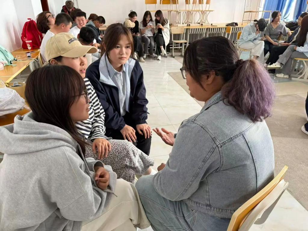 此次活动精心设计了各个环节,“开呀开呀开火车”游戏让同学们在欢声笑语中打破隔阂,减轻对陌生环境的紧张感;“击鼓传花”环节通过即兴自我介绍和才艺展示,帮助克服社交恐惧;“团队协作画队徽”活动让同学们在共同创作中学会沟通配合,建立团队信任;“松鼠和大树”游戏让新生进一步加深了对彼此的了解,增进了友谊。最后的“交流分享”环节,新生在轻松氛围中敞开心扉,分享入学以来的心理感受与成长收获,心理老师传授了实用的心理调适技巧,帮助大家缓解焦虑。