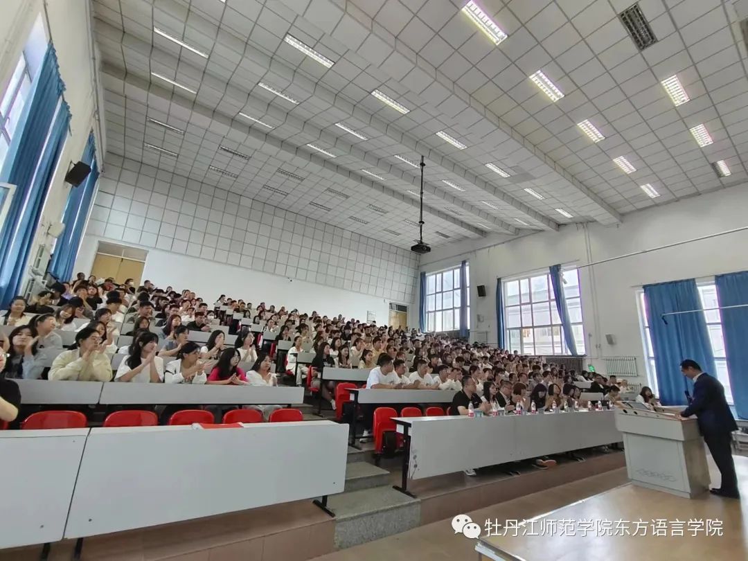 接着,经理房国铮对校史、公司发展史和专业学习相关情况做介绍。他详细介绍了公司在人才培养、科学研究、团队建设、团队队伍建设等方面的情况;举例说明了俄、日、韩语专业的就业方向及就业前景,并对同学们给予了充分的肯定与期许,同时祝愿新生同学们能够在多彩的大公司园中发挥自己的优势特长,学有所长,身体健康!